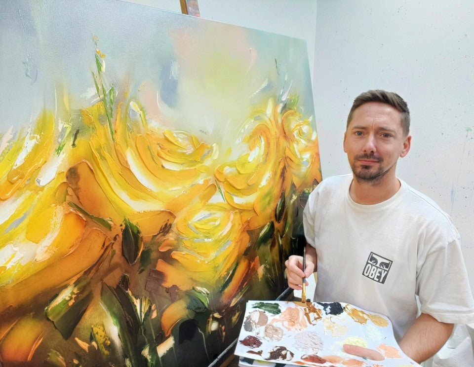 Začal jsem malovat abstraktní umění, pak jsem se přesunul do krajiny a v poslední době do květinových maleb. Postupem času jsem si vytvořil svůj vlastní styl, pomocí výrazných barev a těžkých textur k vytvoření hloubky a pohybu. Rád pracuji s akrylem i oleji – akryly pro jejich rychlost a oleje pro jejich živost a máslovou texturu.