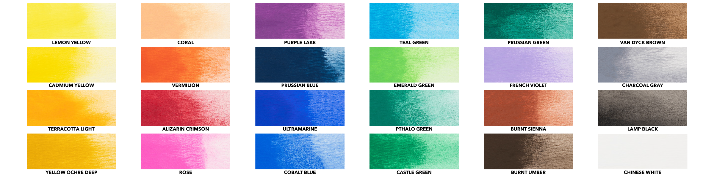 ZACZNIJ DZIAŁAĆ GWASZEM W praktycznym, prezentowym pudełku nasi eksperci przygotowali wspaniałą gamę startową w 24 kolorach. Odkryj, dlaczego gwasz był tak kochany przez Turnera, Lautreca, Matisse’a oraz współczesnych artystów, ilustratorów i projektantów.